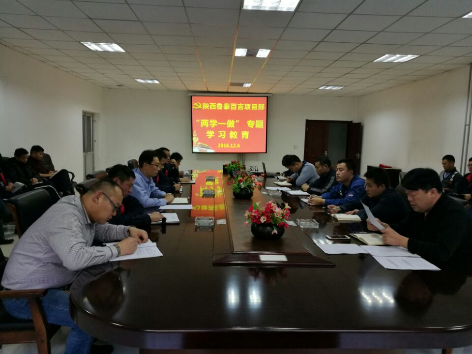 12月6日,陕西鲁泰公司百吉、亿隆、海则庙三项目部结合"警示教育"活动,持续开展"两学一做"学习教育。