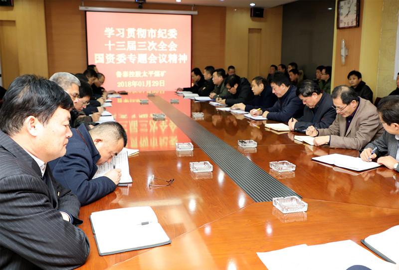 1月29日上午,太平煤矿在三楼会议室召开班组中心组扩大学习会议,学习贯彻市纪委十三届三次全会及国资委专题会议精神。矿党政负责人汤保民主持会议并做重要讲话。矿中层以上领导干部参加会议。