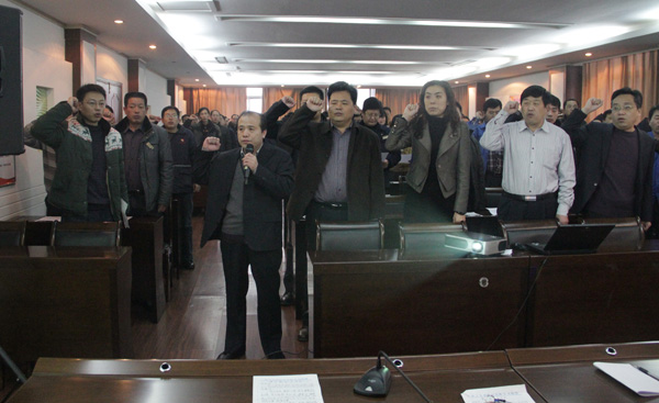 1月24日,金威煤电举行2013年度勤政廉政宣誓和书写廉政承诺书活动,公司董事长肖作飞主持会议,公司班子成员、中层以上党员领导干部参加会议。